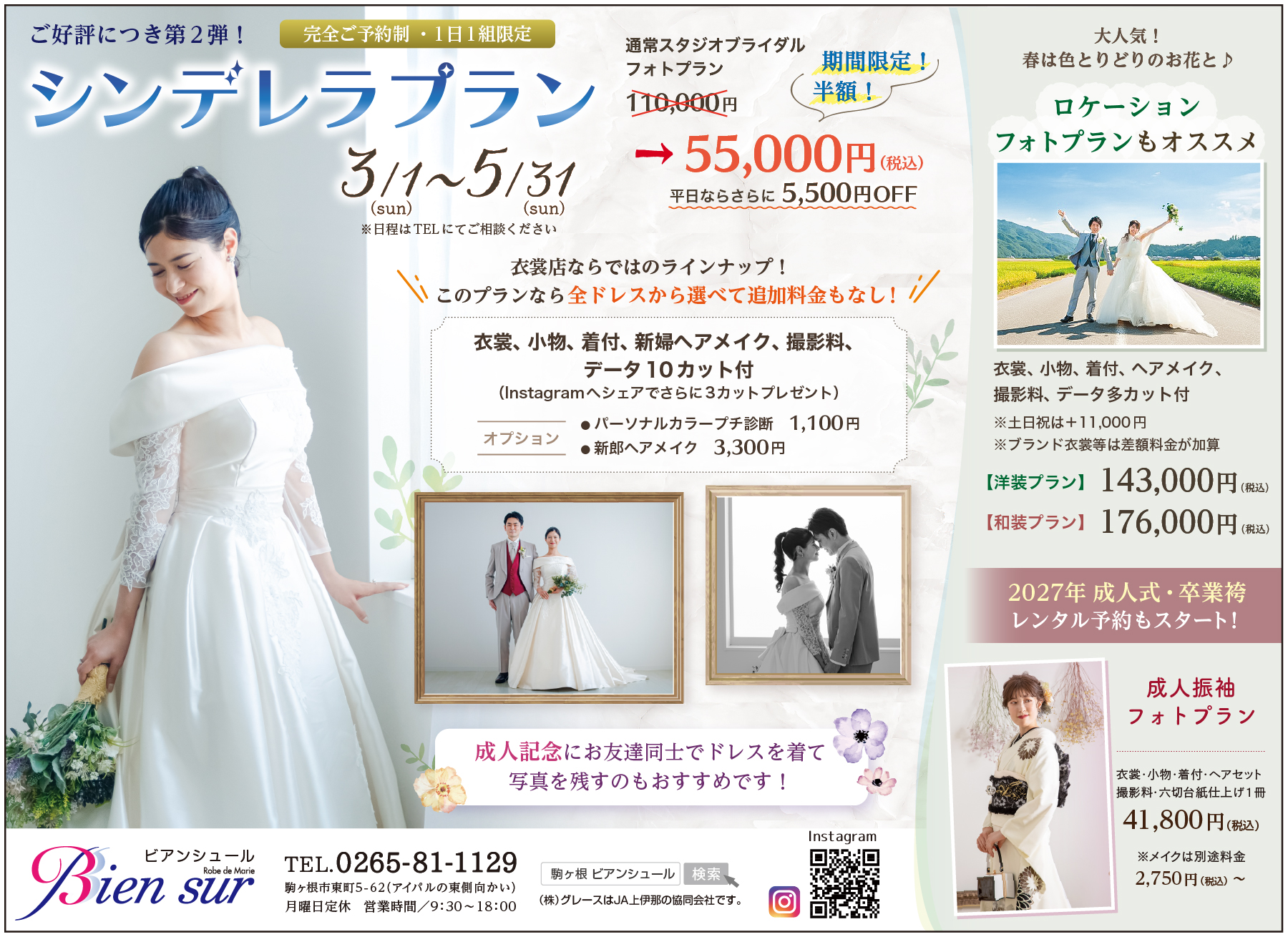 ご好評につき第2弾!シンデレラプラン(完全ご予約制・1日1組限定)